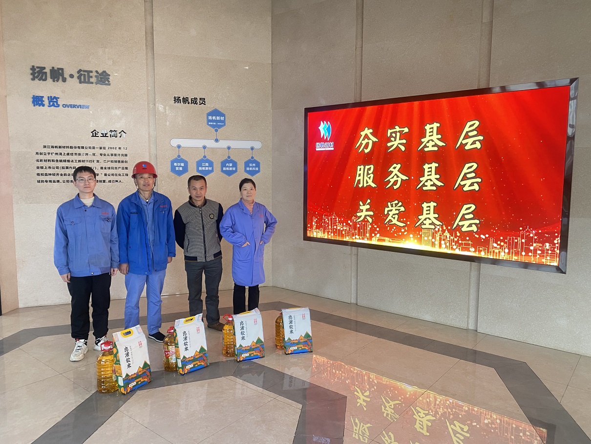 為推進學(xué)習(xí)貫徹習(xí)近平新時代中國特色社會主義思想主題教育走深走實,弘揚中華傳統(tǒng)美德,關(guān)愛困難群體,履行社會責(zé)任,彰顯企業(yè)擔(dān)當(dāng), 2023年 11月17日下午,揚帆新材支部委員會開展了走訪慰問老員工老黨員活動,為12戶職工送去了米、油等生活必需品。