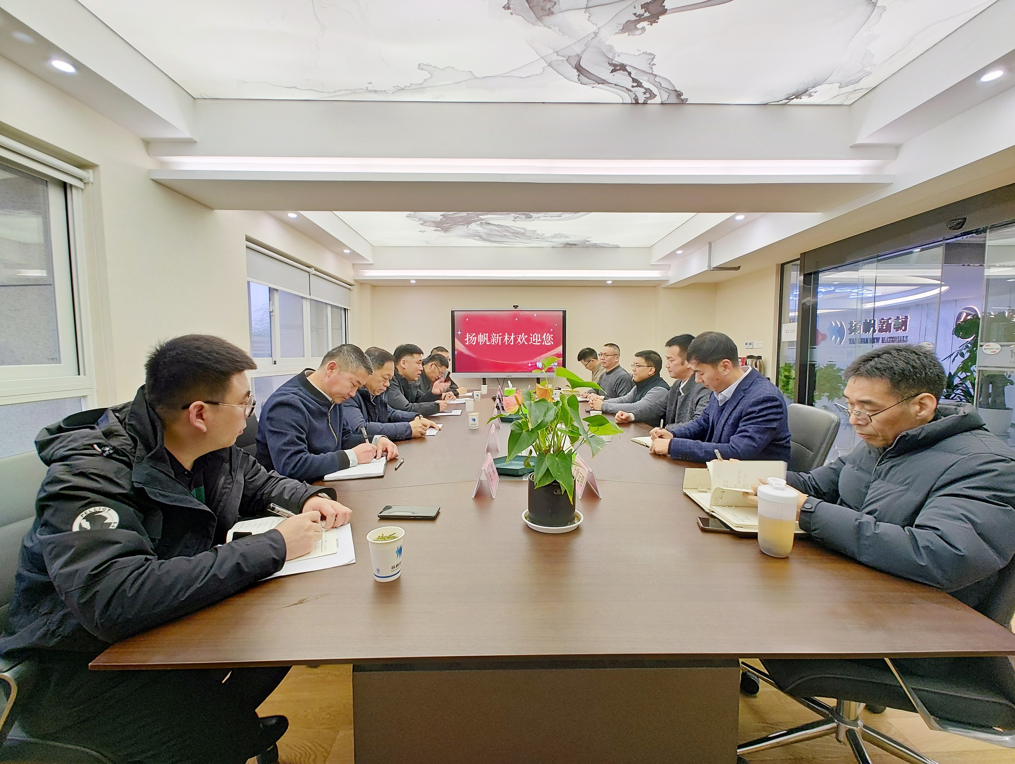 1月31日,內(nèi)蒙古阿拉善高新技術(shù)產(chǎn)業(yè)開發(fā)區(qū)黨工委副書記、管委會主任田學明一行到揚帆新材杭州總部走訪慰問。公司董事長、總裁樊彬,常務(wù)副總裁劉輝等接待并陪同調(diào)研。