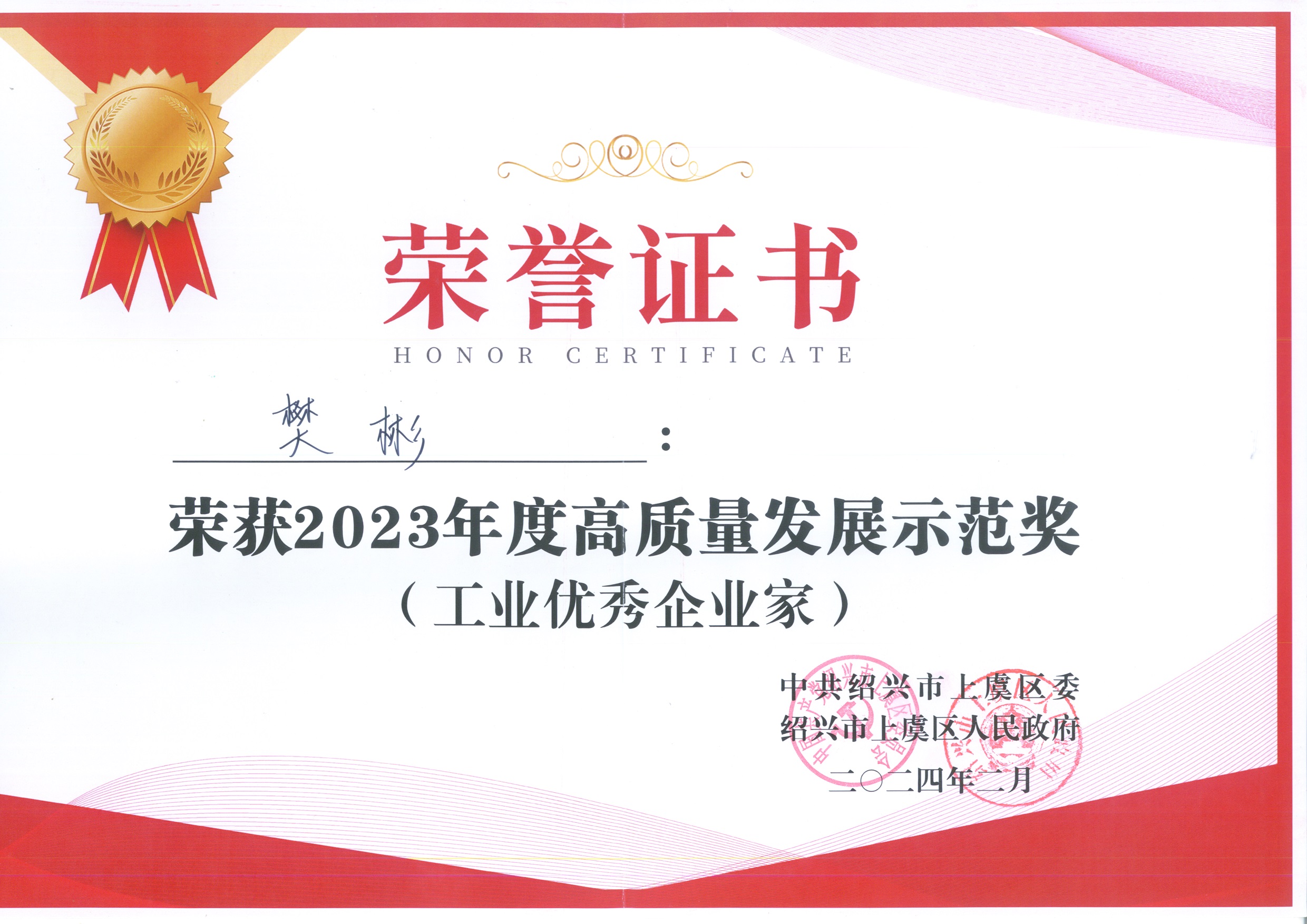 會上表彰了2023年度區(qū)級各類先進(jìn)單位和個人,并對上虞區(qū)經(jīng)濟(jì)發(fā)展做出卓越貢獻(xiàn)的企業(yè)及企業(yè)家舉行了授獎儀式。浙江揚(yáng)帆新材料股份有限公司董事長樊彬榮獲2023年度高質(zhì)量發(fā)展示范獎(工業(yè)優(yōu)秀企業(yè)家)。