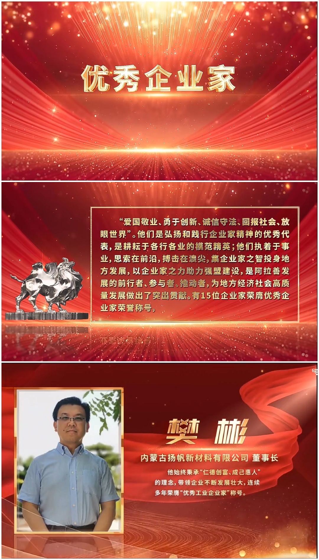 阿拉善盟委、行署對多年來建設(shè)阿拉善做出貢獻(xiàn)的優(yōu)秀企業(yè)、企業(yè)家和工程技術(shù)人員進(jìn)行表彰。樊彬董事長榮獲阿拉善盟“優(yōu)秀企業(yè)家”榮譽(yù)稱號。