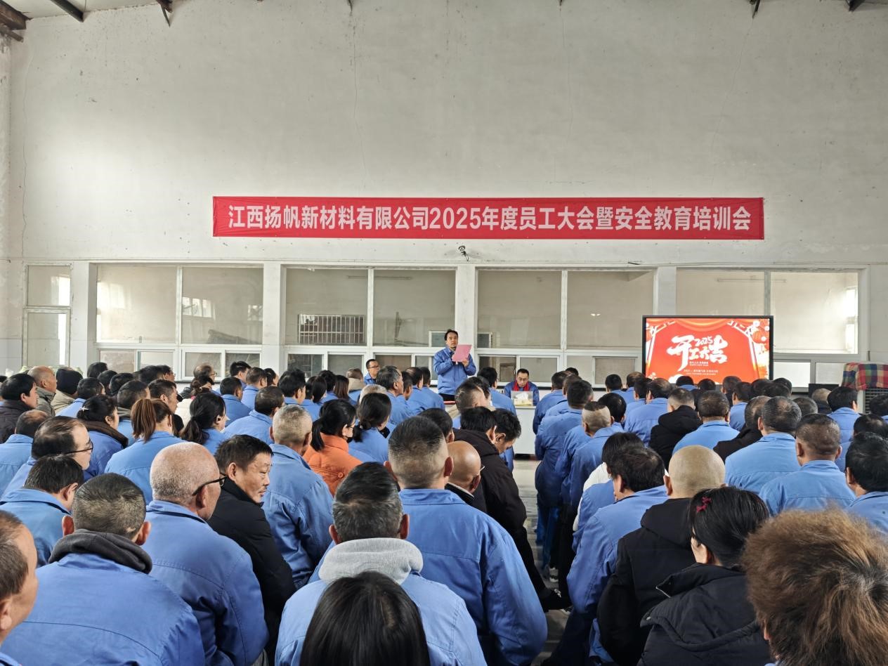 2025年2月6日,江西揚帆公司召開2025年度員工大會暨安全教育培訓會。公司總經(jīng)理余立志及經(jīng)營班子成員和全體員工參加了此次會議。會議由副總經(jīng)理呂雪皓主持。