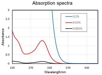 (in Acetonitrile _____ 0. 1% _____ 0.01% _____0.001%)